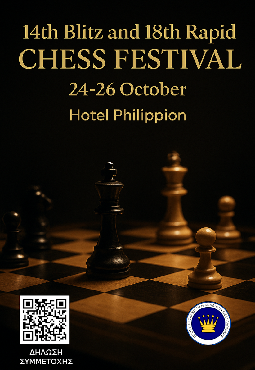 Προκήρυξη για το 14ο Διεθνές Φεστιβάλ Σκακιού Blitz και το 18ο Διεθνές Φεστιβάλ Σκακιού Rapid (Ξενοδοχείο “ΦΙΛΙΠΠΕΙΟΝ 24-26/10/2025)