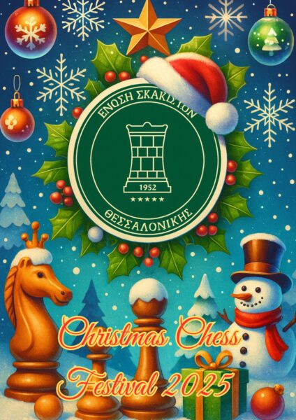 Η Ένωση Σκακιστών Θεσσαλονίκης, η Ένωση Σκακιστών Καλαμαριάς και η Σκακιστική Ακαδημία «Γ. Ιωακειμίδης», με τη στήριξη της ΕΣΣΘ-Χ, σας προσκαλούν στο εορταστικό μας φεστιβάλ σκακιού, ένα τριήμερο γεμάτο παρτίδες, χριστουγεννιάτικο πνεύμα και πολύ παιχνίδι!